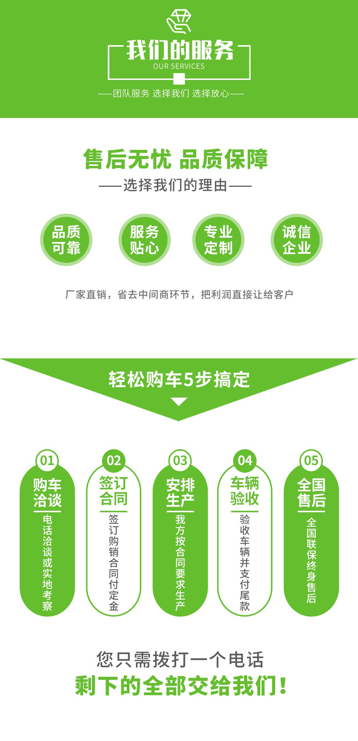 ·創(chuàng)優(yōu)質(zhì)服務企業(yè); 造用戶滿意產(chǎn)品; 樹國內(nèi)知名品牌!公司堅持以“質(zhì)量求生存、信譽求發(fā)展、科技創(chuàng)新路、服務創(chuàng)品牌”的經(jīng)營理念,以“誠信、務實、創(chuàng)新、進取”為企業(yè)宗旨,不斷提升自身產(chǎn)品質(zhì)量,開發(fā)適應市場需求物美價廉的多功能專用汽車! 我們將謁誠為您提供更好、更快、更優(yōu)質(zhì)的服務!